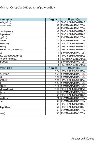 Παρουσίαση αποτελεσμάτων των δημοτικών εκλογών της 8 Οκτωβρίου 2023 για τον Δήμο Κορινθίων