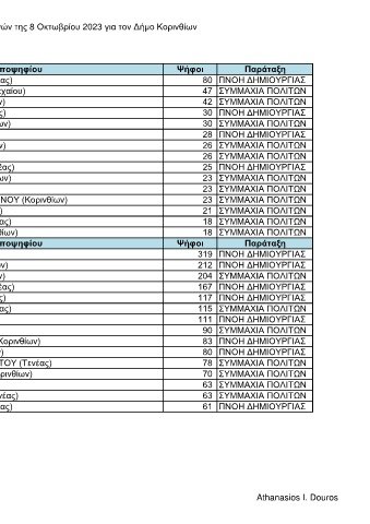 Παρουσίαση αποτελεσμάτων των δημοτικών εκλογών της 8 Οκτωβρίου 2023 για τον Δήμο Κορινθίων
