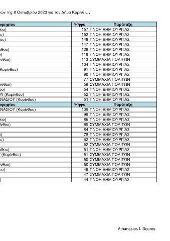 Παρουσίαση αποτελεσμάτων των δημοτικών εκλογών της 8 Οκτωβρίου 2023 για τον Δήμο Κορινθίων